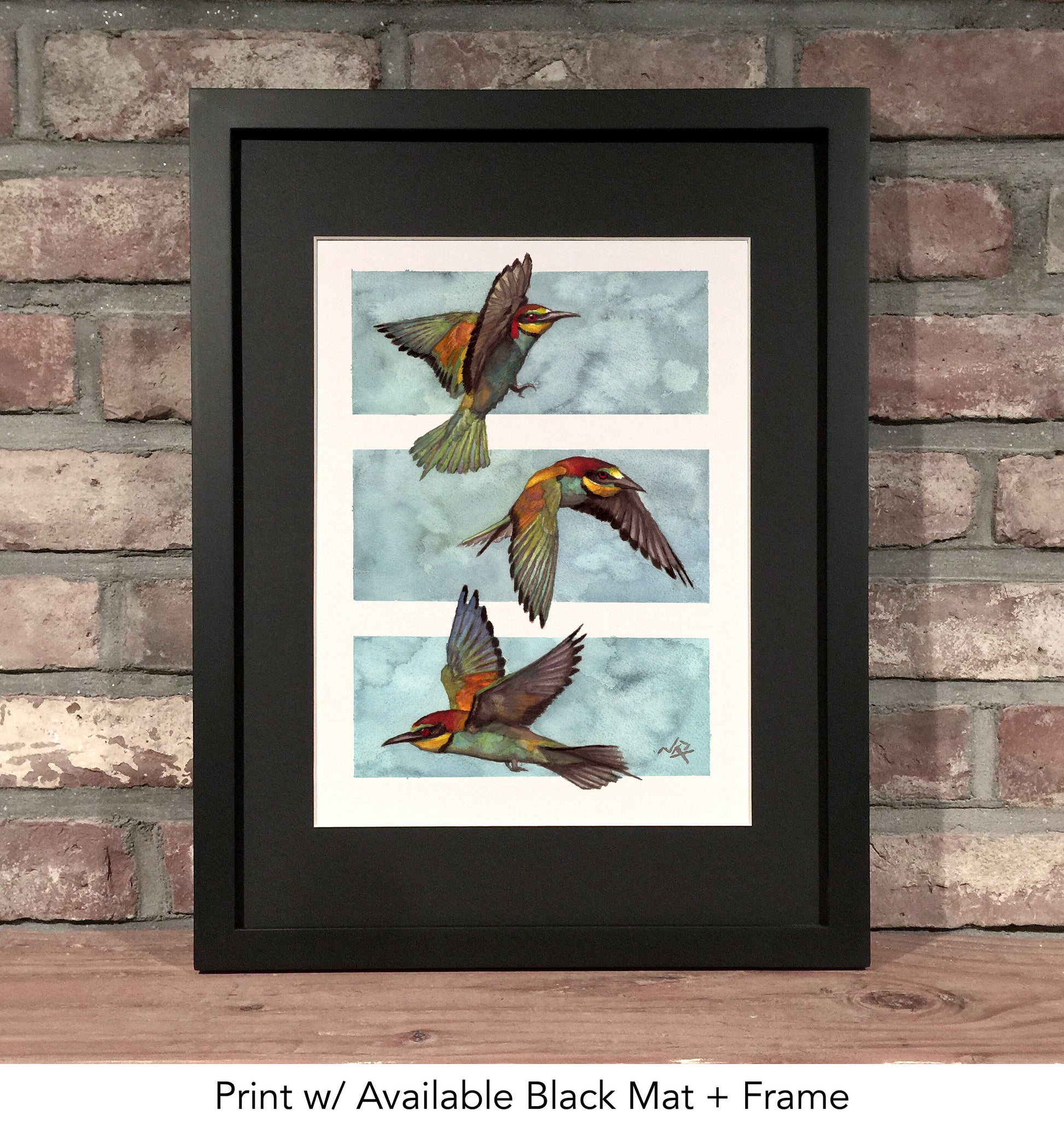 - 9"x12" Matted and Framed - Mounted/matted in black or white, w/ Black 12x16 frame.