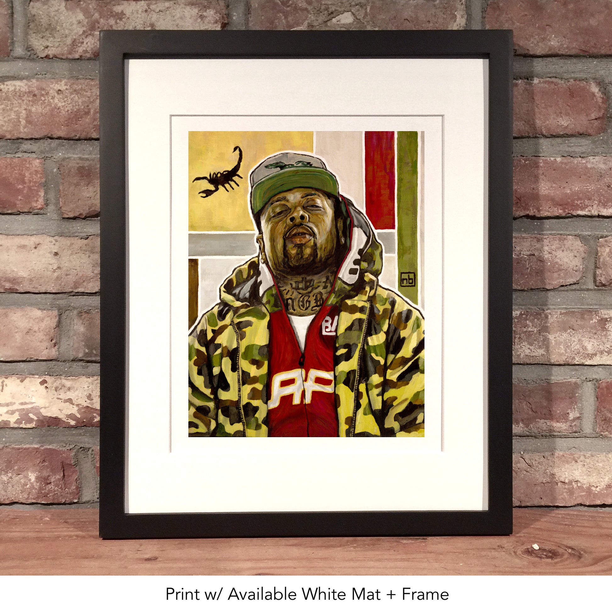- 12"x16" Matted and Framed - Mounted/matted in black or white, w/ Black 16x20 frame.